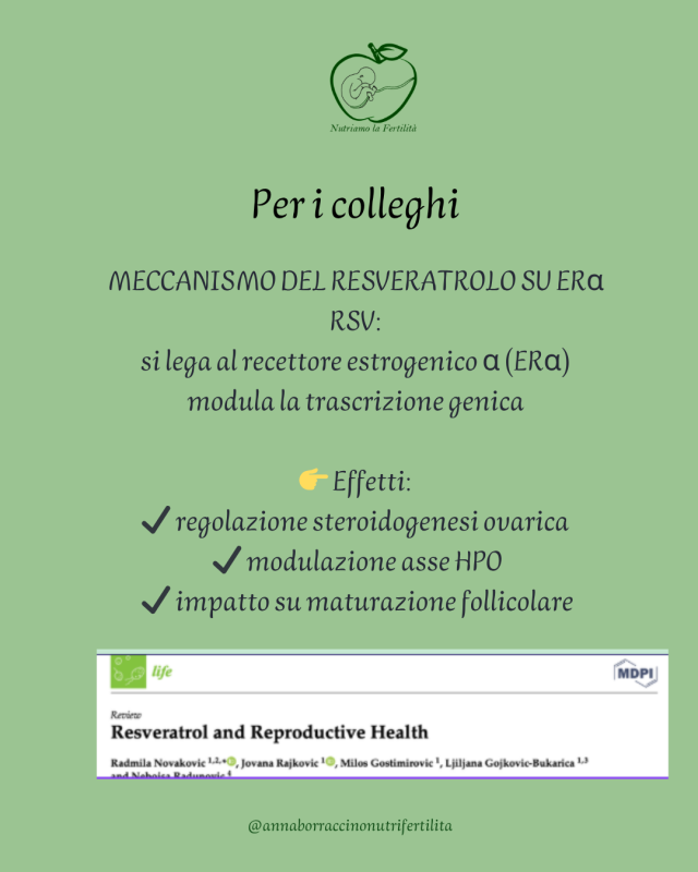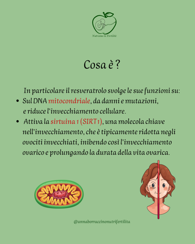 Il resveratrolo agisce su diversi pathways biologici chiave nella funzione riproduttiva e di conseguenza nella fertilità che elencherò di seguito: